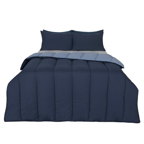 HIG 3 Pieces Navy Reversible Coverless Double Duvet Set, Navy/Light Blue