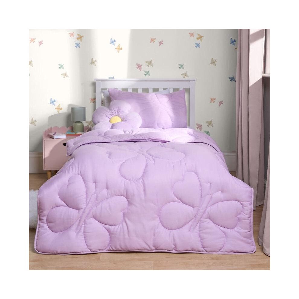 (Butterfly Lilac, Double) OHS Coverless Quilted Duvet with Pillowcase Set Soft Fleece Teddy Sherpa Cable Knit 7.5/10.5 TOG All Year Round Summer Winte
