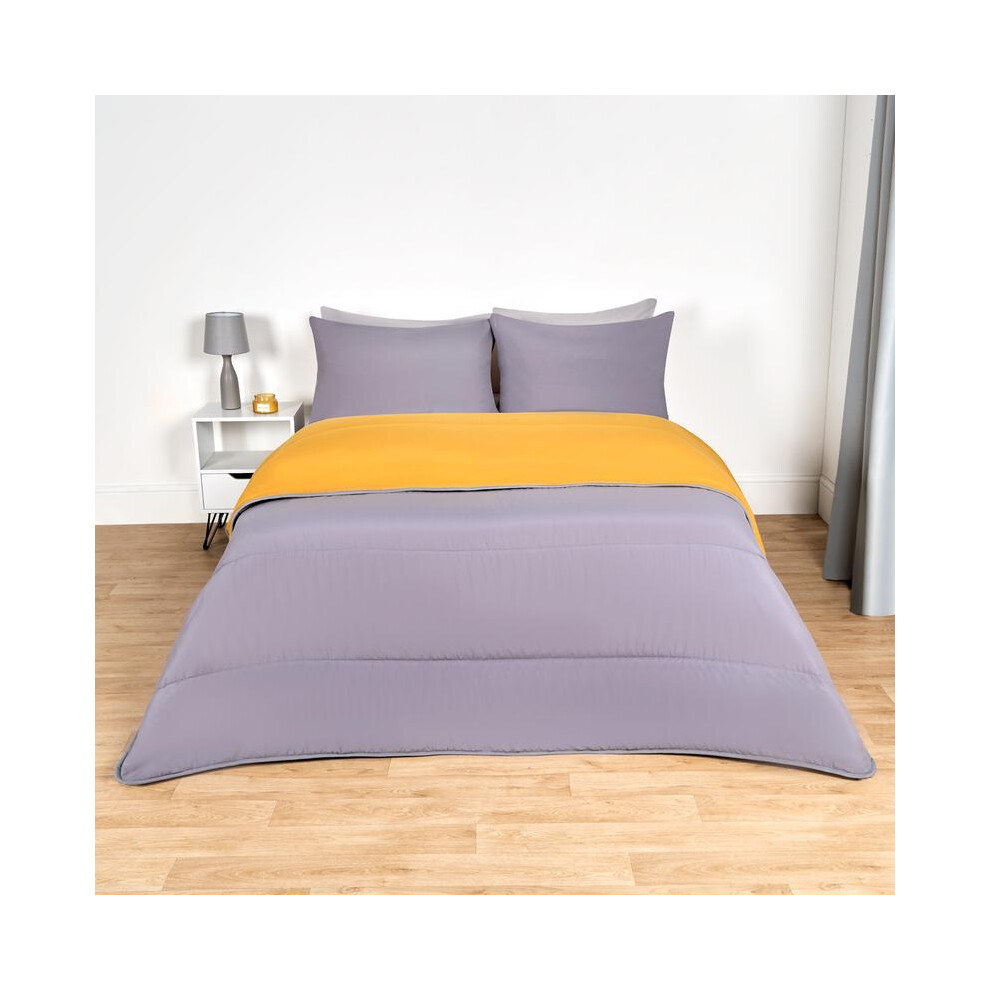 OHS 10.5 Coverless Double Duvet, Reversible Duvets Double Washable Coverless Duvet Double Summer Winter Travel Camping Bedding Soft Comfy Bed Set with Pillowcase, Grey/Ochre