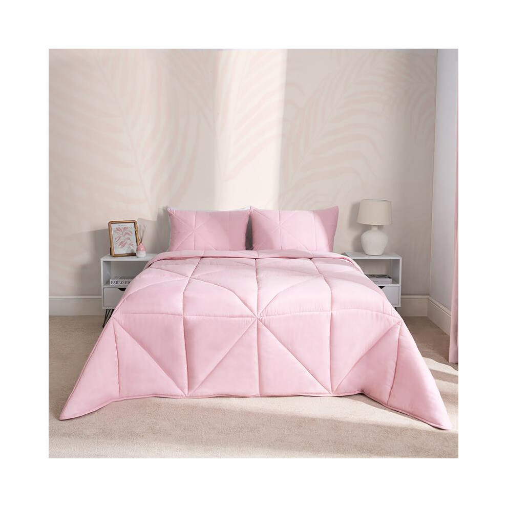 (Geo Blush Pink, Double) OHS Coverless Quilted Duvet with Pillowcase Set Soft Fleece Teddy Sherpa Cable Knit 7.5/10.5 TOG All Year Round Summer Winter