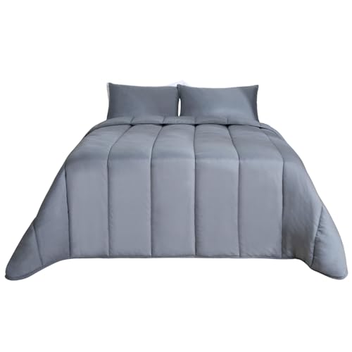 OHS Coverless Double Duvet 10.5 Tog, Soft Warm Microfibre Fabric Lightweight Coverless Duvet Comfortable Year Round Use Washable Double Bed Duvets & Pillowcases, Grey