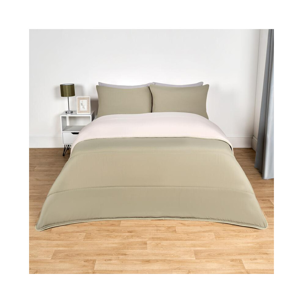 (Sage/Natural Reversible, Double) OHS Coverless Quilted Duvet with Pillowcase Set Soft Fleece Teddy Sherpa Cable Knit 7.5/10.5 TOG All Year Round Summ