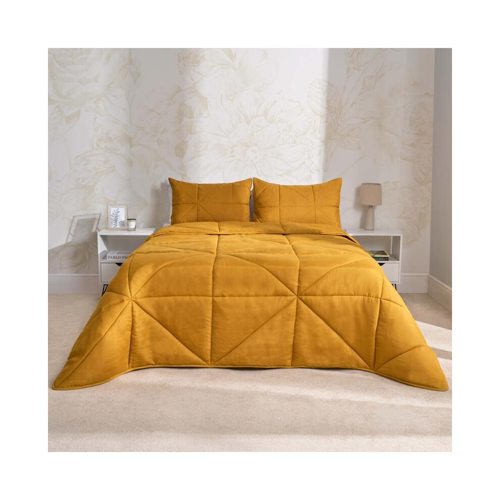 (Geo Ochre Yellow, Double) OHS Coverless Quilted Duvet with Pillowcase Set Soft Fleece Teddy Sherpa Cable Knit 7.5/10.5 TOG All Year Round Summer Wint