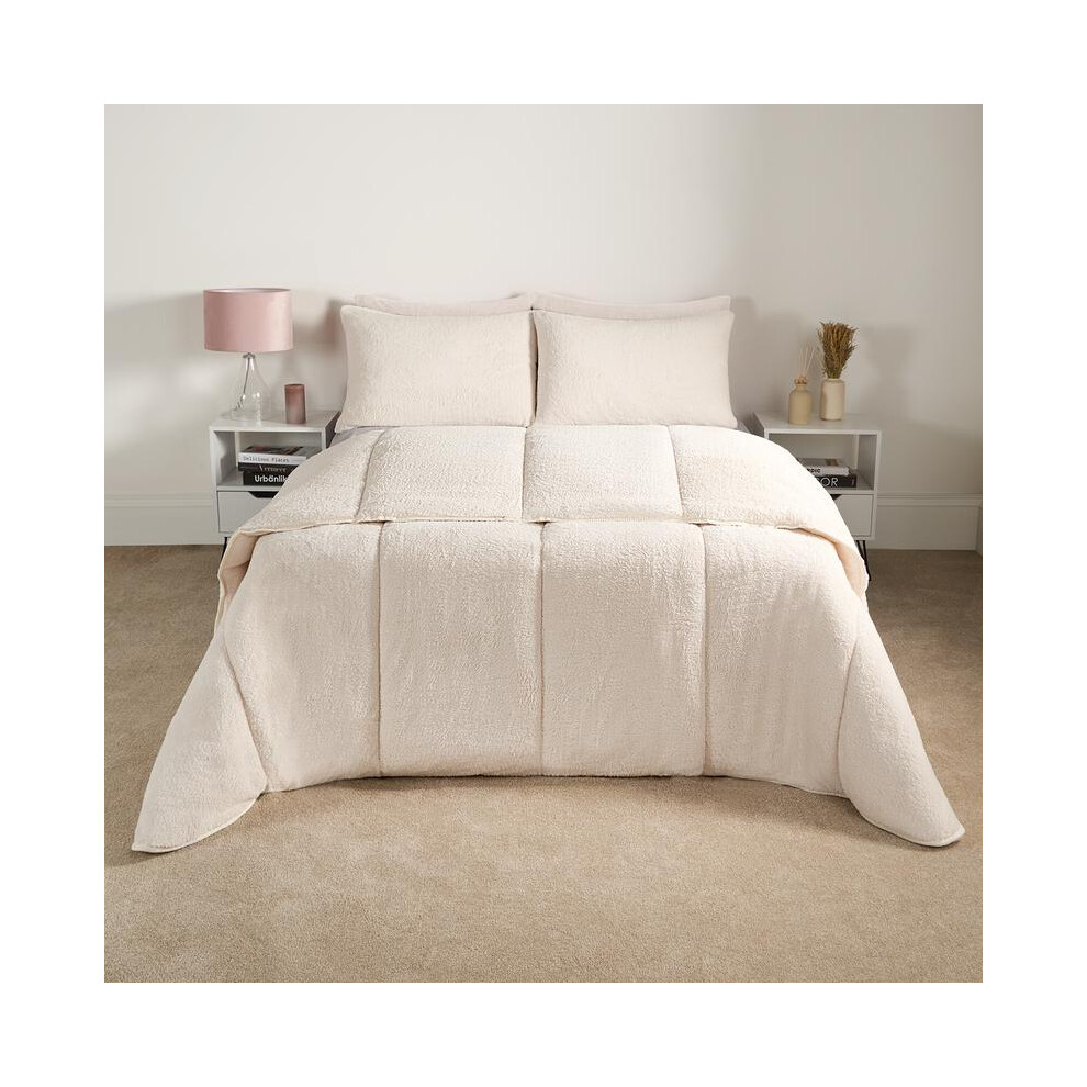 (Teddy Cream, Double) OHS Coverless Quilted Duvet with Pillowcase Set Soft Fleece Teddy Sherpa Cable Knit 7.5/10.5 TOG All Year Round Summer Winter Ca