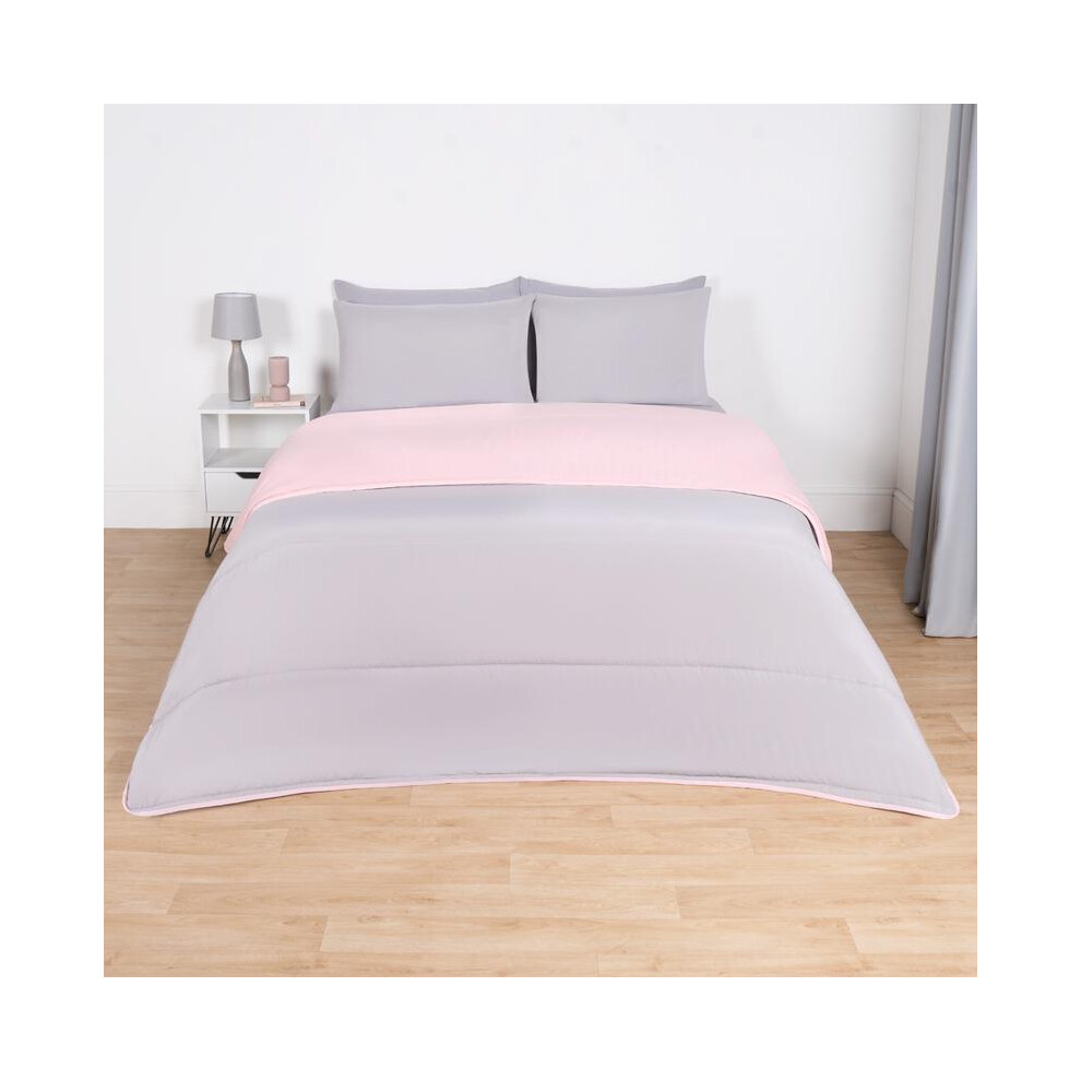 (Blush/Grey Reversible, Double) OHS Coverless Quilted Duvet with Pillowcase Set Soft Fleece Teddy Sherpa Cable Knit 7.5/10.5 TOG All Year Round Summer