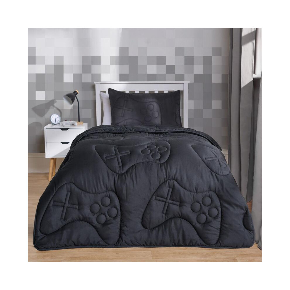 (Gaming Black, Double) OHS Coverless Quilted Duvet with Pillowcase Set Soft Fleece Teddy Sherpa Cable Knit 7.5/10.5 TOG All Year Round Summer Winter C