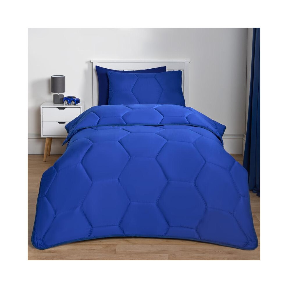 (Honeycomb Blue, Double) OHS Coverless Quilted Duvet with Pillowcase Set Soft Fleece Teddy Sherpa Cable Knit 7.5/10.5 TOG All Year Round Summer Winter