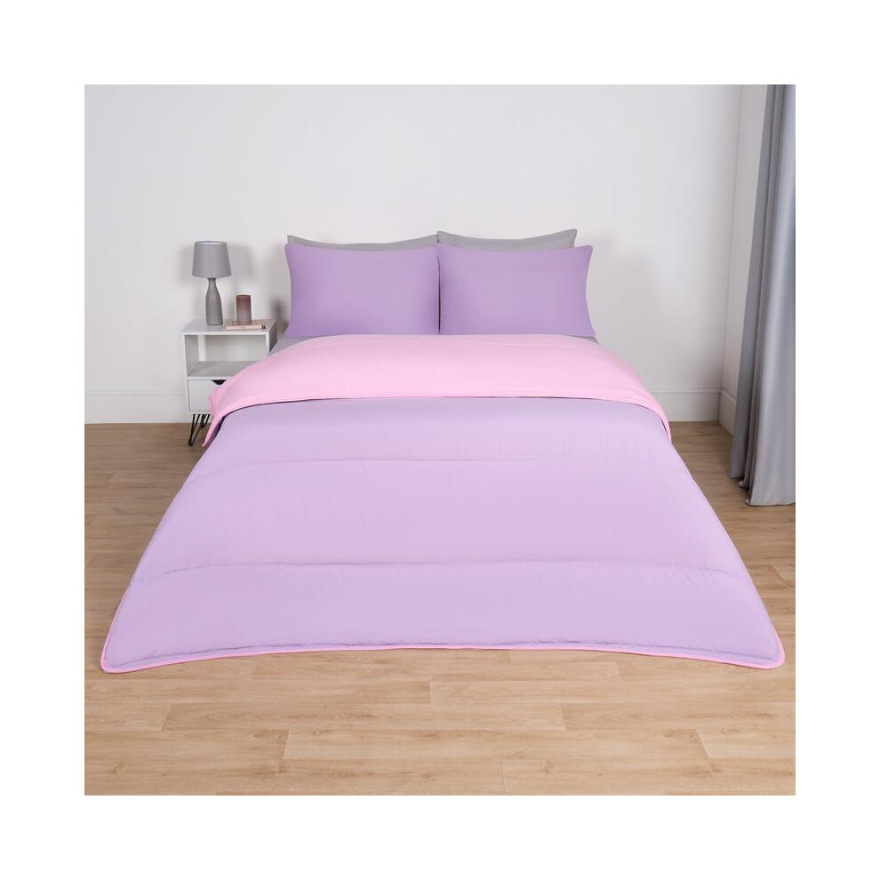 (Pink/Lilac, Double) OHS Coverless Quilted Duvet with Pillowcase Set Soft Fleece Teddy Sherpa Cable Knit 7.5/10.5 TOG All Year Round Summer Winter Cam