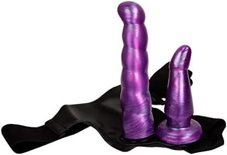 Purple Ribbed Double Dildo Strap On Harness for Couples - Wearable Dual Dildo