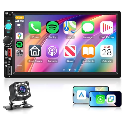 Rimoody Double Din Wireless Carplay Car Radio Android Auto, 7'' Touch Screen 2 Din Car Stereo with Mirror Link Bluetooth FM EQ Fast Charge Support Backup Camera SWC Dual USB