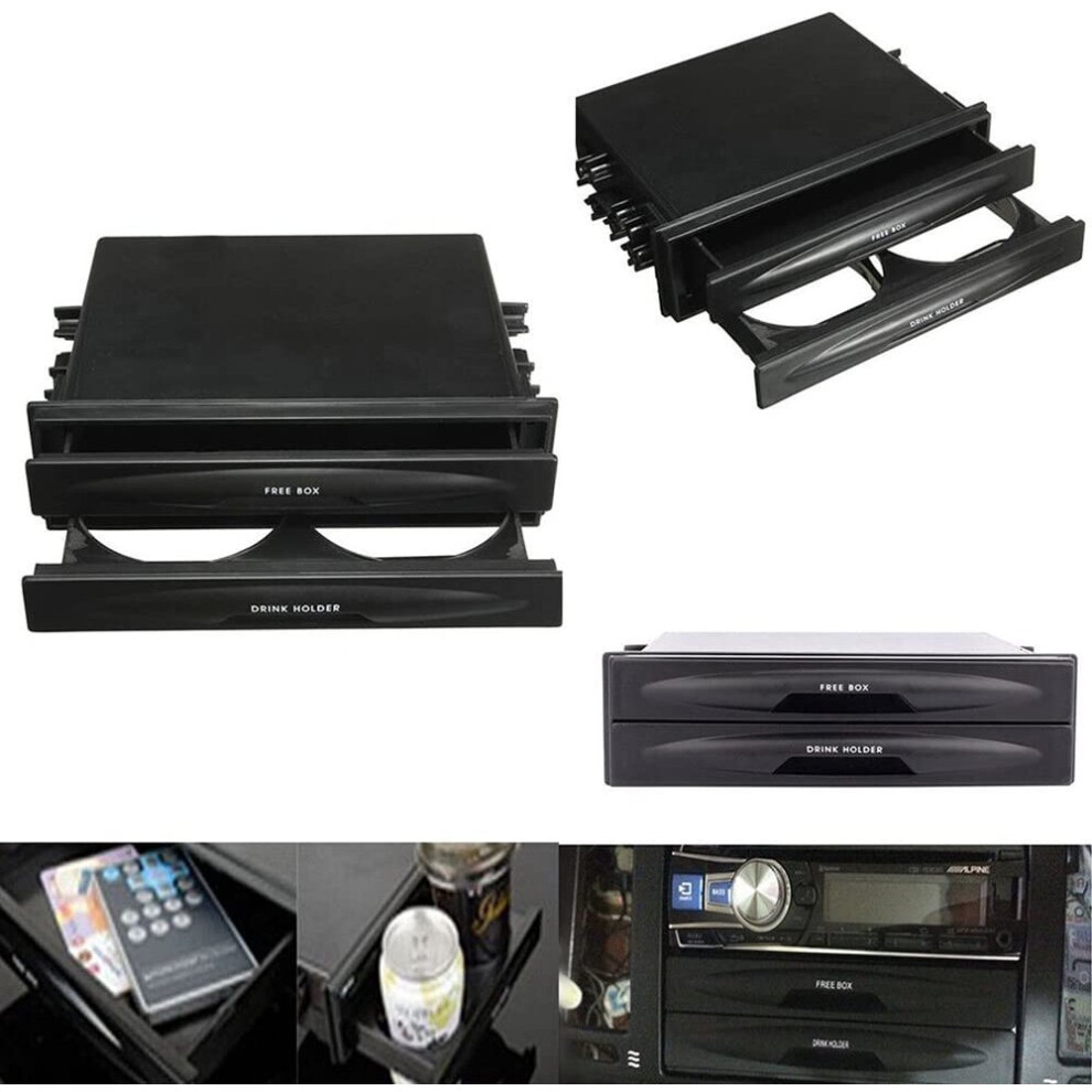 Universal Double DIN Car Radio Holder Plastic Drawers Storage Box Pocket Cup