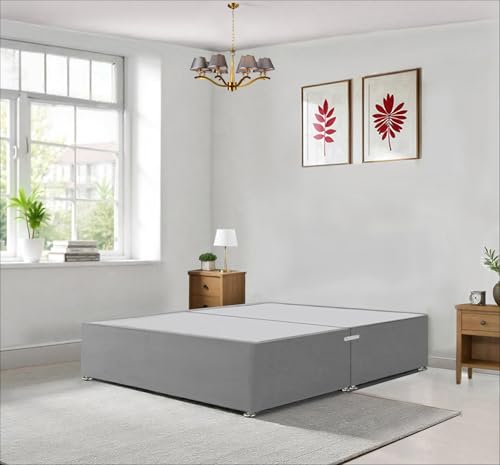 ComfoRest - Elegant 4FT Small Double Divan Base NO DRAWER | Durable Frame with Sturdy Support | Practical Design for Modern Bedrooms | Functional Option for Compact Spaces (Grey Plush)
