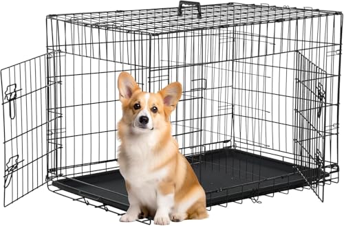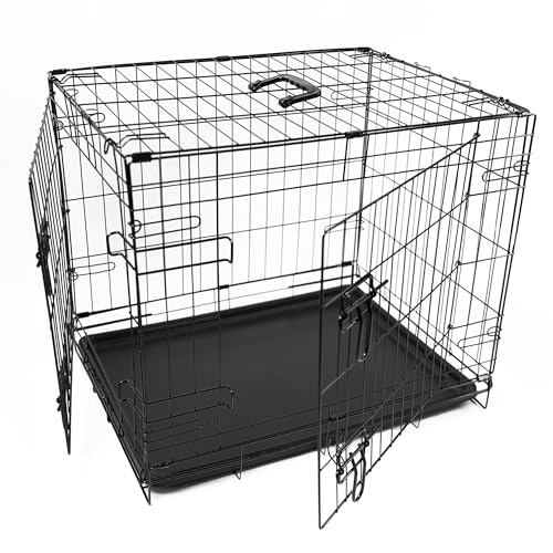 Amazon Basics Large Metal Dog Crate/Cage with Tray, Durable and Foldable Dog Cage with Double Door, Black, Large 91cm (36")