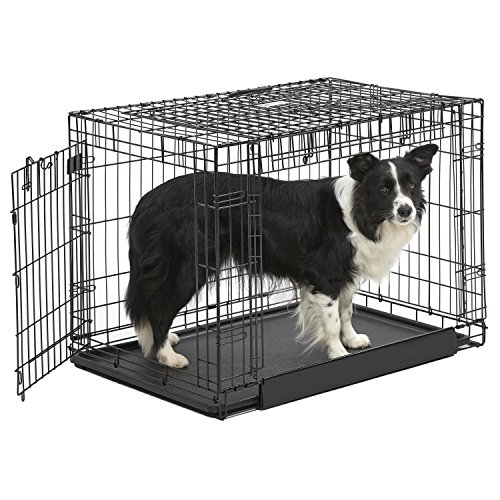 Amazon Basics Large Metal Dog Crate/Cage with Tray, Durable and Foldable Cage Double Door, Black, 91cm (36")