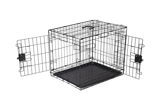Amazon Basics Small Metal Dog Crate/Cage with Tray, Durable, Foldable and Adjustable Cage Double Door, Black, 61 cm L x 46 W 51 H