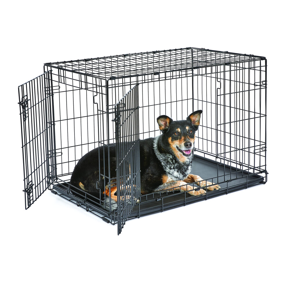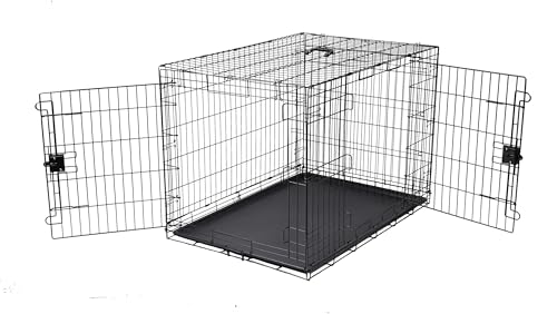 Amazon Basics XL Metal Dog Crate/Cage with Tray, Durable and Foldable Dog Cage with Double Door, Black, Extra Large 107cm (42")