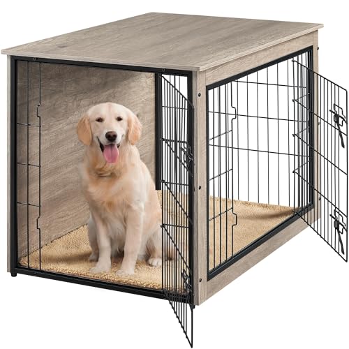 Hello-5ive Large Dog Crate Furniture, Wooden Cage with Double Doors