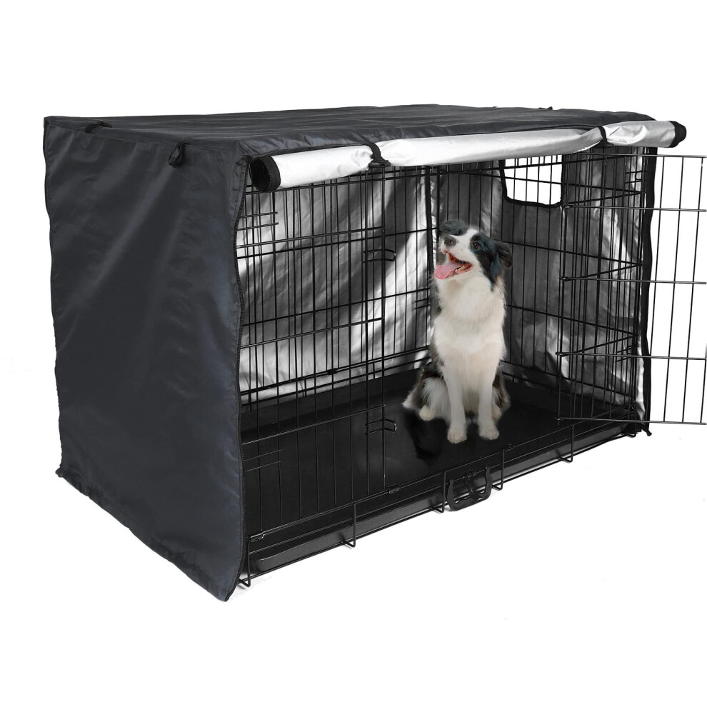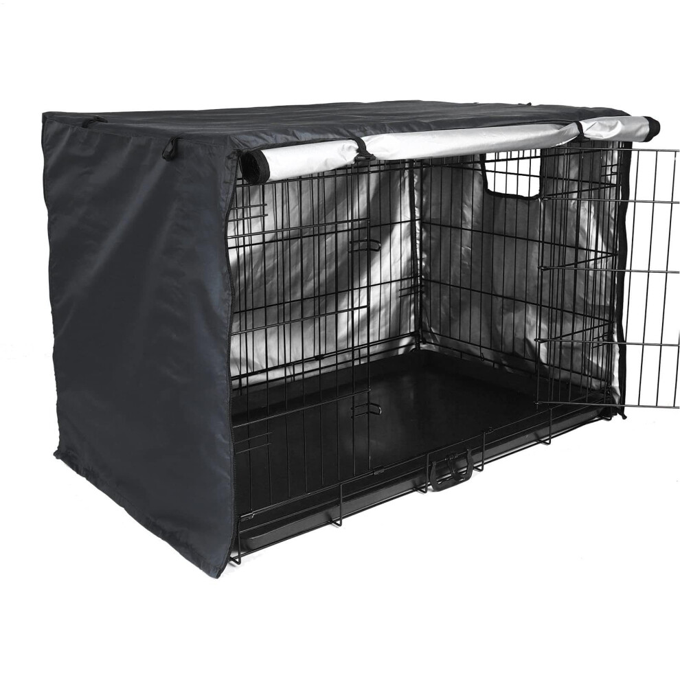 Double Door Dog Crate Cover 42 Inch Heavy Duty Oxford Fabric Windproof Kennel Protector For Wire Crate Medium Dog Breeds
