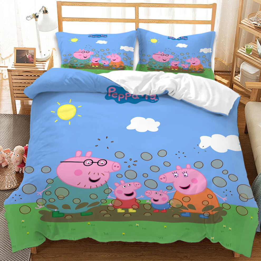 (3, Double(200x200cm)) Peppa Pig UK Size Sheets Three Piece Four Piece Single and Double KING Duvet Covers