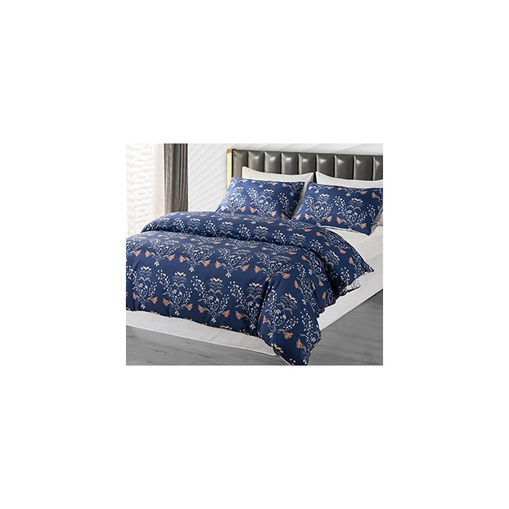 Aisbo Double Duvet Covers Set Navy Blue - 3Pcs Bedding Set Double Bed Soft Brushed Microfiber Quilt Cover with 2 Pillowcases