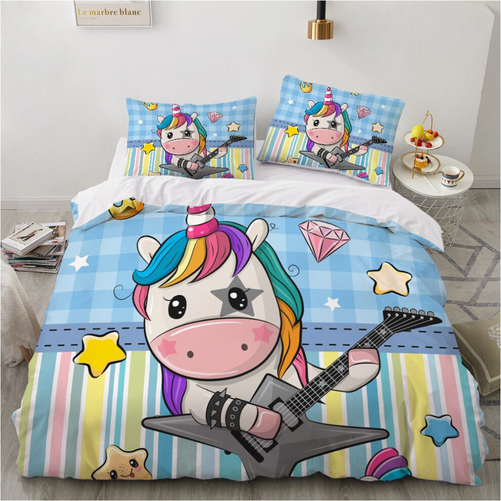 (Style 01, Double(200X200CM/3PCS)) Unicorn Kids Bedding Single Double Duvet Covers UK