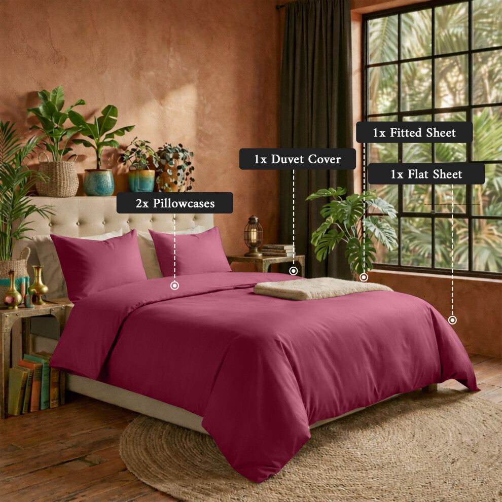 (Burgundy/Red, Double) 4 Piece Duvet Covers Bedding Set Fitted Bed Sheets