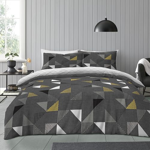 GC GAVENO CAVAILIA Printed Duvet Cover Sets, Reversible Bedding Bed Set, Polycotton Quilt Covers, 3D Triangle-, Double