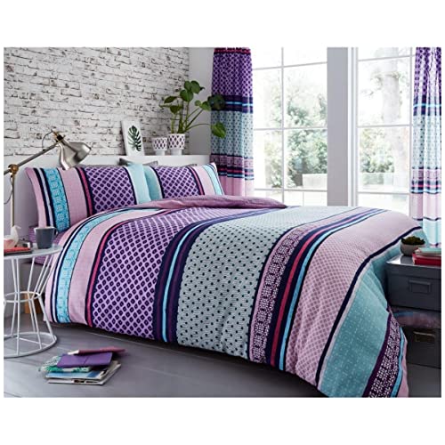 GC GAVENO CAVAILIA Luxury Geometric Duvet, Floral Quilt Set, Polycotton Bed Covers, Darcy-Purple, Double