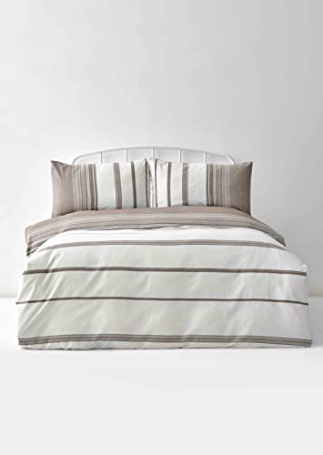 GC GAVENO CAVAILIA Luxury Striped Bedding Double Bed Set, Reversible Printed Duvet Cover, 3Pcs Breathable Comforter Covers, Natural