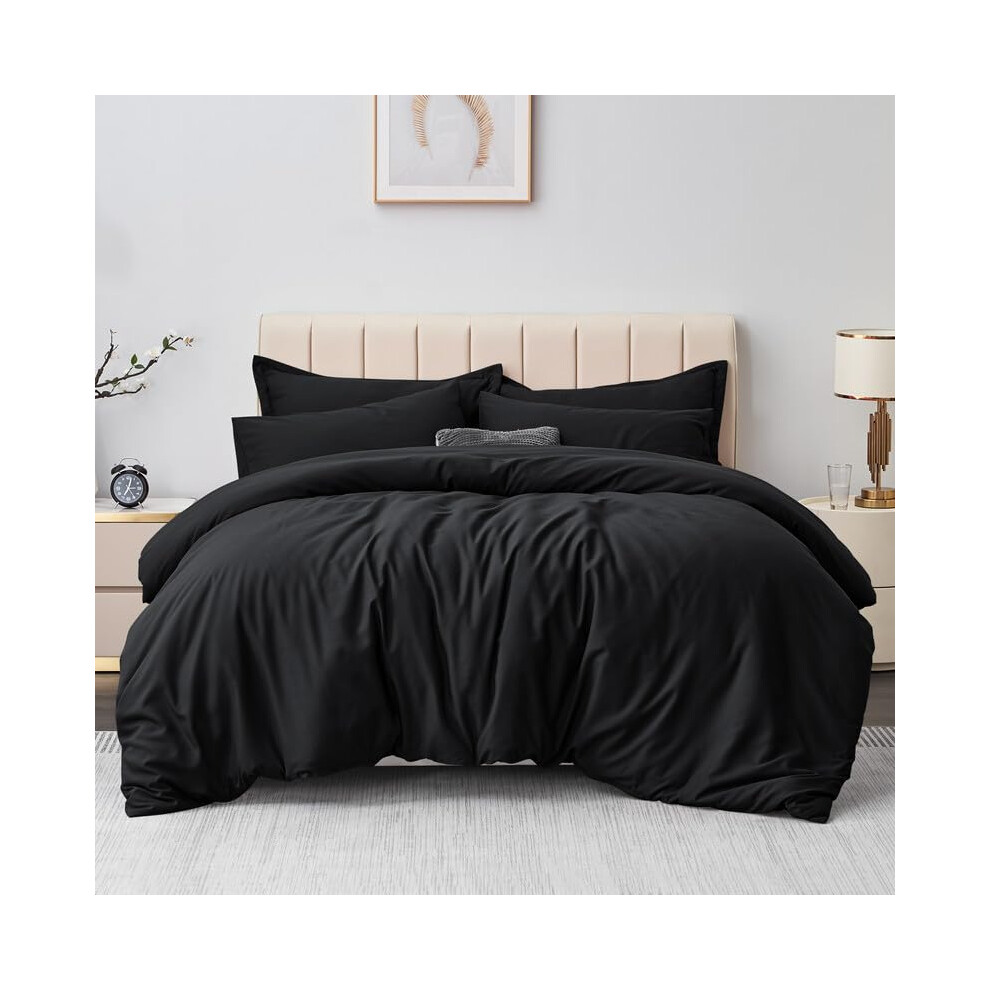 Aisbo Double Duvet Covers Set Black - 3Pcs Bedding Set Double Bed Soft Brushed Microfiber Quilt Cover with 2 Pillowcases