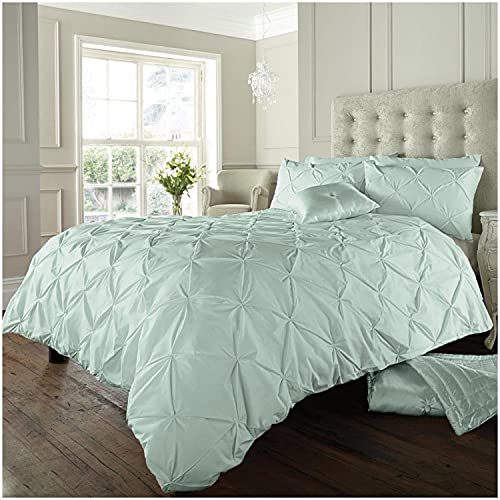 GC GAVENO CAVAILIA Pintuck Duvet Cover Sets, Pinch Pleat Bedding Quilt Covers, Polycotton Bed Covers Breathable Double Bed Set With Pillowcases Duck Egg