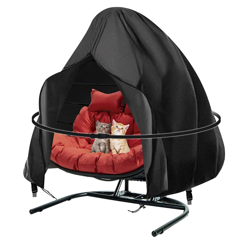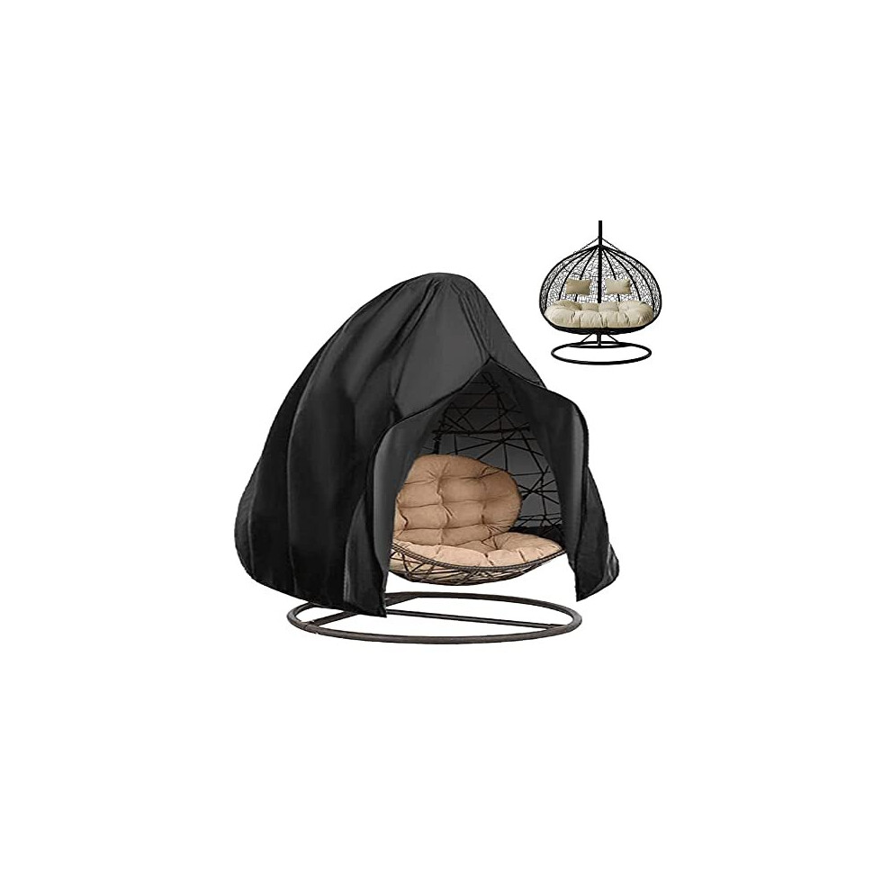(Black) Double Egg Chair Cover Outdoor Waterproof Dustproof Heavy Duty Garden Cocoon Wicker Patio 2 Seater Large Egg Shaped Swing Chair Cover