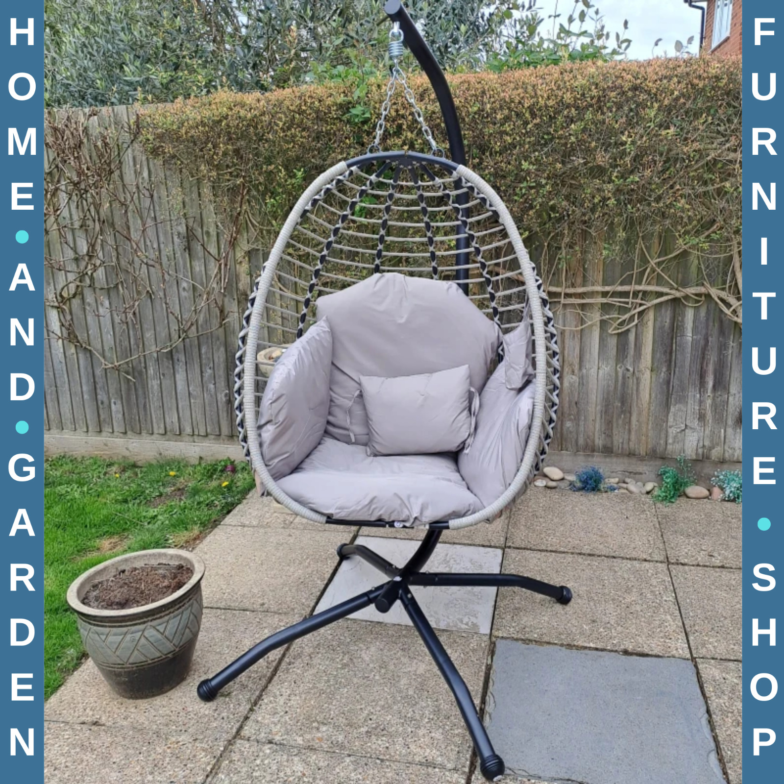 Khaki Hanging Egg Chair Outdoor Garden Conservatory Folding Basket and Cushion