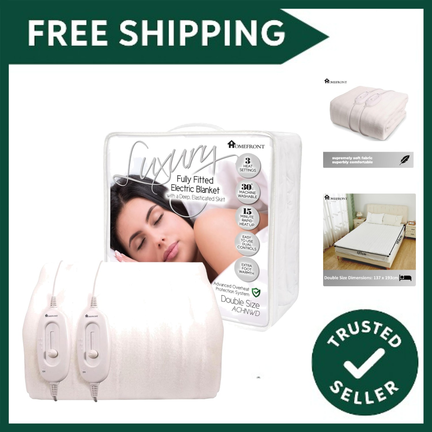Homefront Electric Blanket Double Size Dual Control Premium Fleece Fully Fitted Heated Mattress Cover, Dual Control