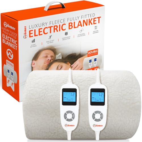 WÄRMER Luxury Electric Heated Blanket - Fully Fitted Double - Fleece Material - Dual Controllers - Body and Feet Zone Settings - 12-Hour Timer and 9 Heat Settings