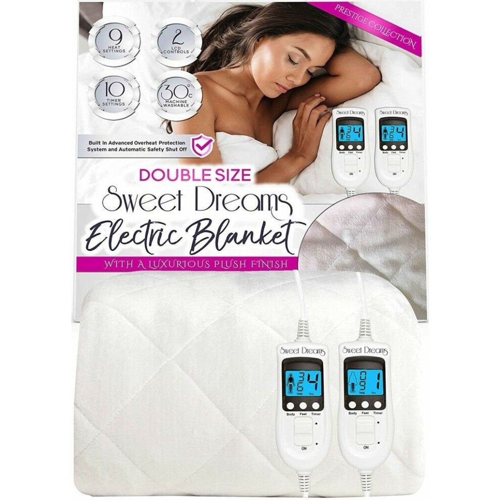Sweet Dreams Electric Blanket Double Bed Size 193 x 137 x 40cm, Plush Fleece Quilted, Fitted, Washable, Heated Mattress Cover Underblanket, Dual Control, Prestige (Double)