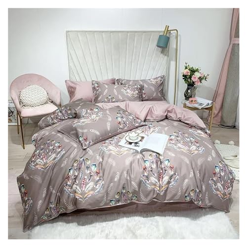 ZCCZJS Feather Leaves Series Duvet Cover Set Luxury 600TC Egyptian Cotton Bed Linens Bedding Set Flat Sheet Double Queen King,Bedding Set