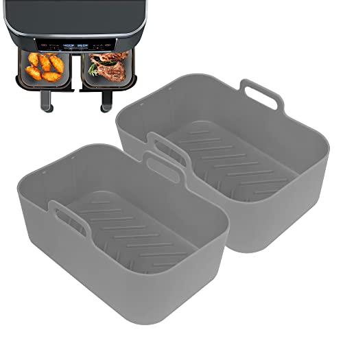 GOVD 2PCS Silicone Pot for Ninjas Dual Air Fryer, Silicone Air Fryer Liners Double Air Fryer Silicone Air Fryer Basket, Air Fryer Rack Accessories for Air Fryer, Oven, and Microwave (Grey)