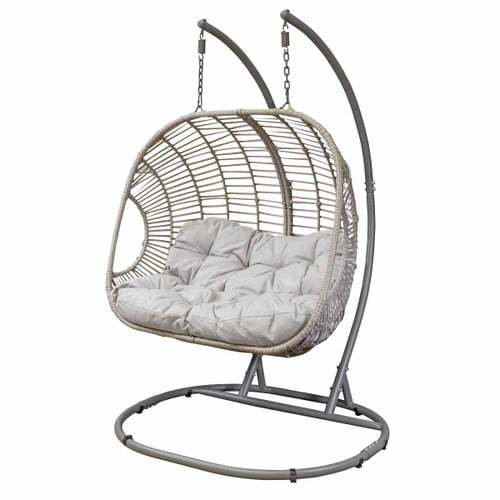 Charles Bentley Double Hanging Swing Chair Seat H196 x D117 W167cm Natural Egg Hang Bench Seating Outdoor Garden Furniture