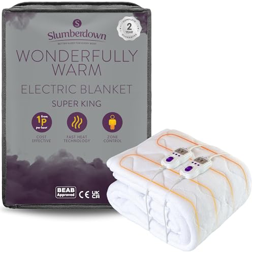 Slumberdown Luxury Electric Blanket Super King Size - Multi-Zone Dual Control Fleece Blanket with 9 Heat Settings | BEAB-Approved, Easy Fit Straps & Washable Heated Blanket (160 × 170cm)