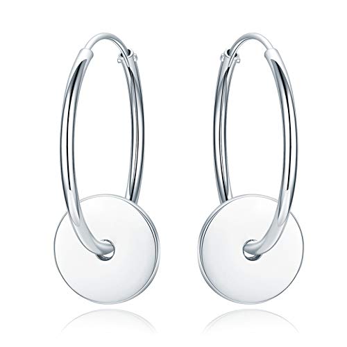 Silver Disc Double Hoop Earrings 18mm - GVE777