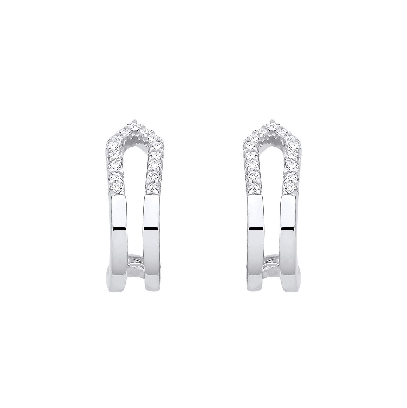 Jewelco London Sterling Silver CZ Double Row Half Hoop Earrings