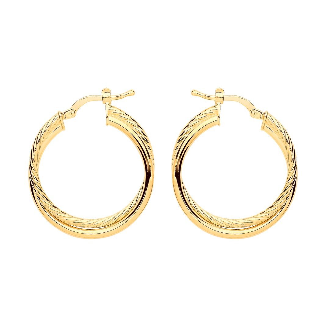 9ct Gold Jewelco London Simple Double Flat Twist Hoop Earrings