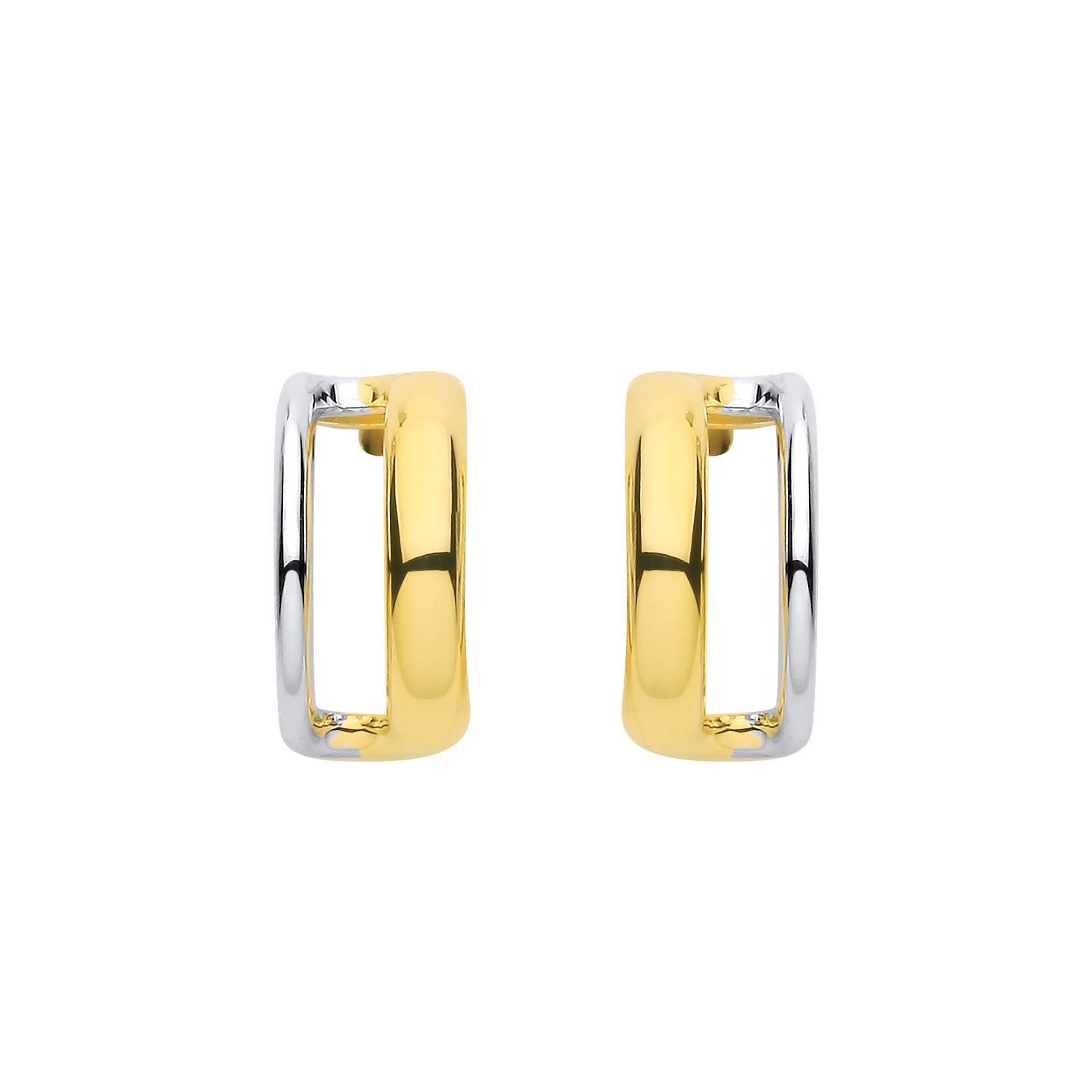 9ct White & Yellow Gold Jewelco London Double Square Twist Hoop Earrings