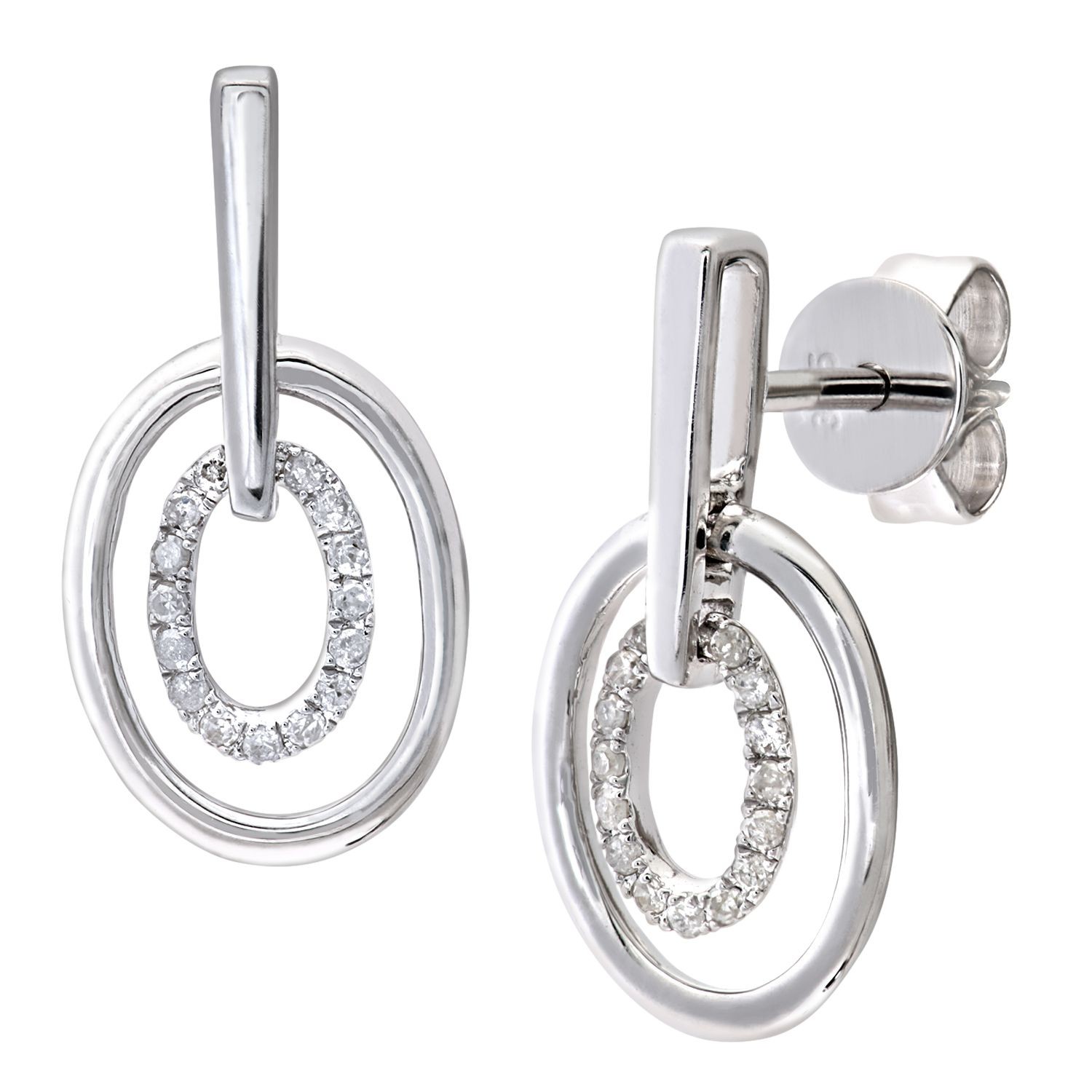 9ct White Gold Jewelco London Round 5pts Diamond Double Halo Hoop Drop Earrings