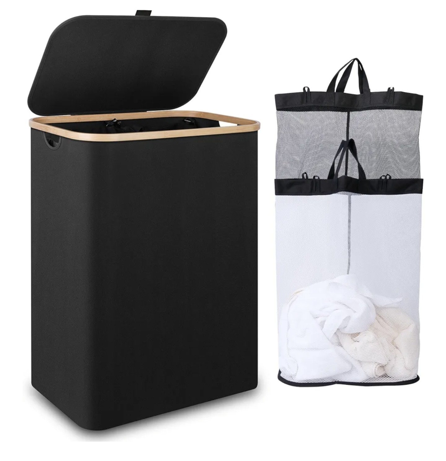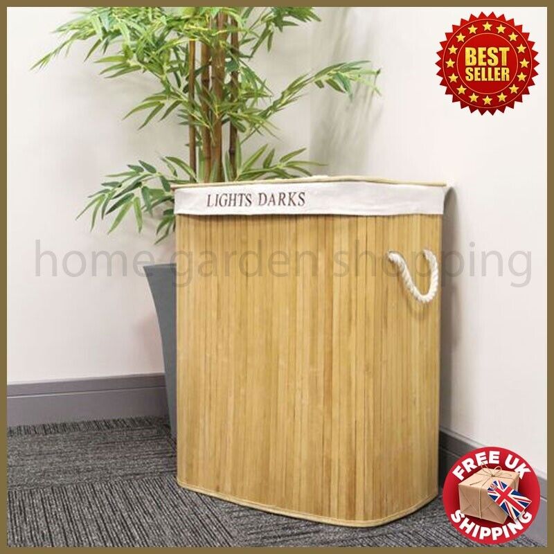 Laundry Hamper Bamboo Basket Clothes Storage Organizer Bag Double with Lid