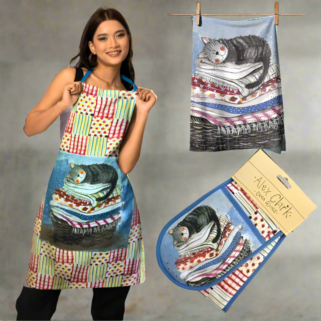 Cat Laundry Basket Double Oven Gloves, Apron and Tea Towel by Alex Clark - Gift