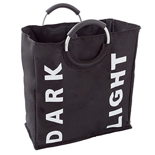 Double Laundry Hamper Sorter- Collapsible Canvas Clothes Basket with Dual Sorting Sections and Round Handles by Lavish Home (Organizer for Home/Dorm)