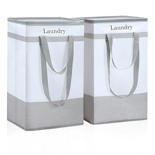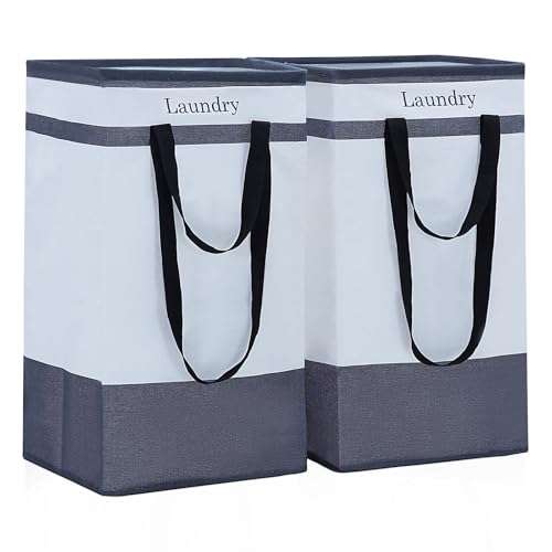 ROSOS Laundry Hamper, 100 L Collapsible Laundry Baskets, 2 Pack Laundry Basket with Extended Double Handle, Foldable Laundry Basket for Laundry Bedroom Bathroom Dorm Storage Clothes Toys, Grey