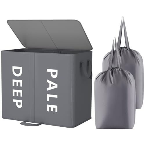 Lifewit 160L Double Laundry Basket with Lid and Removable Laundry Bags, Divided Washing Basket with Handles, Large Separated Laundry Hamper for Bedroom, Bathroom, College Dorm, Laundry Sorting, Grey